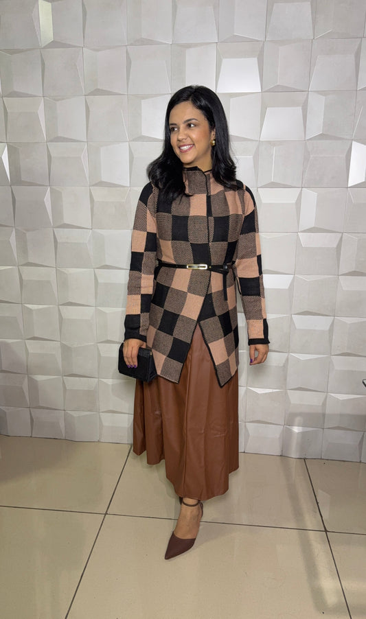 CARDIGAN XADREZ MARROM COM PRETO