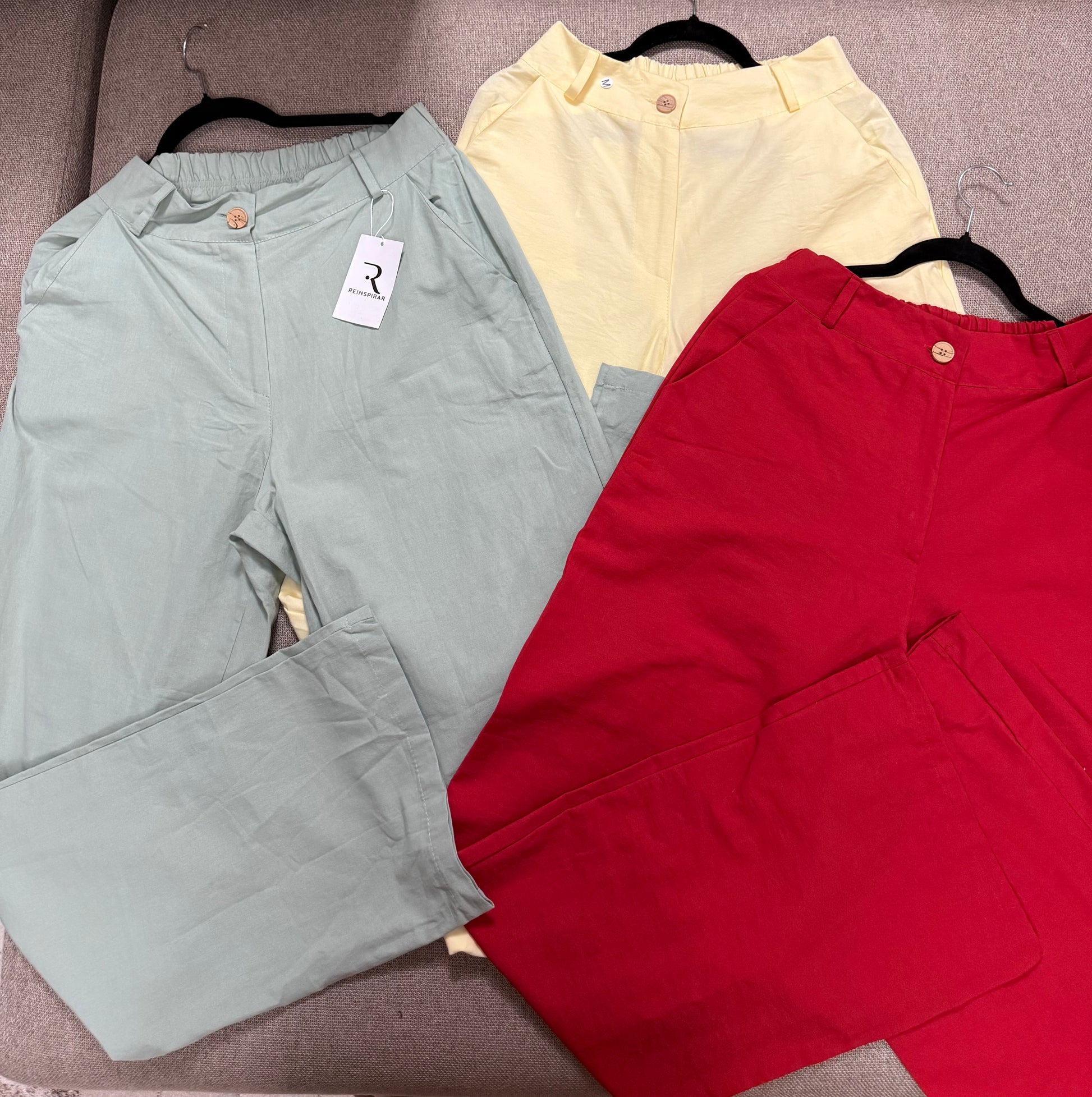 Tecido: Linho com elástico nas costas